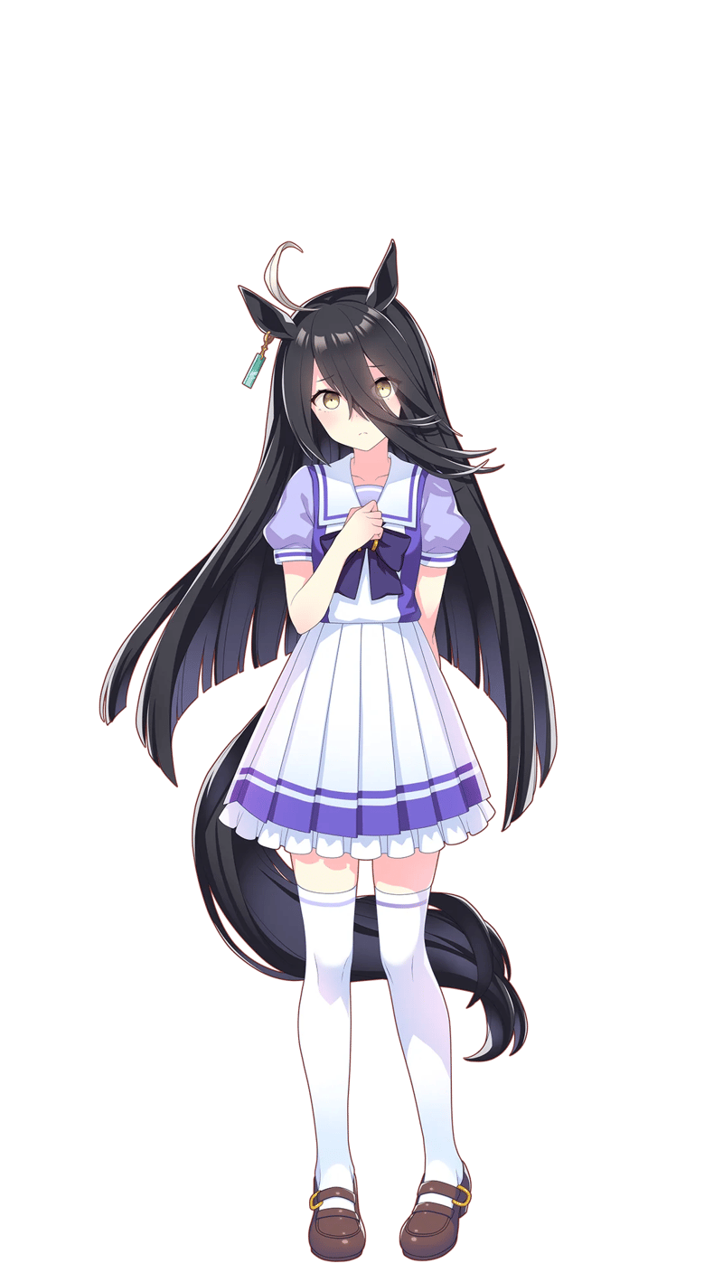 Her dark, mysterious persona and ability to see 'shadows' others cannot reflects the real horse's unexpected power hidden behind an unassuming exterior. She's the most enigmatic character in Uma Musume, a withdrawn loner who stuns everyone when she unleashes her true ability.