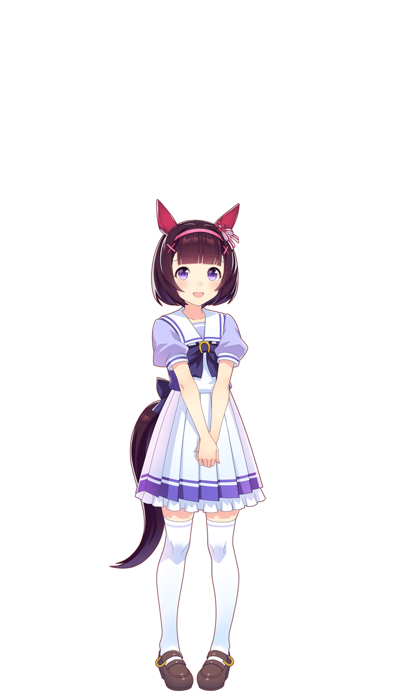 Her small, cute, and reserved personality reflects the real horse's tiny frame. But just like the real Nishino Flower overcame her physical limitations through sheer determination, the character reveals fierce inner strength once a race begins.